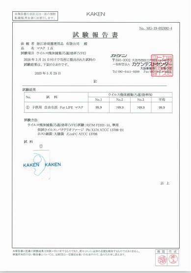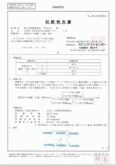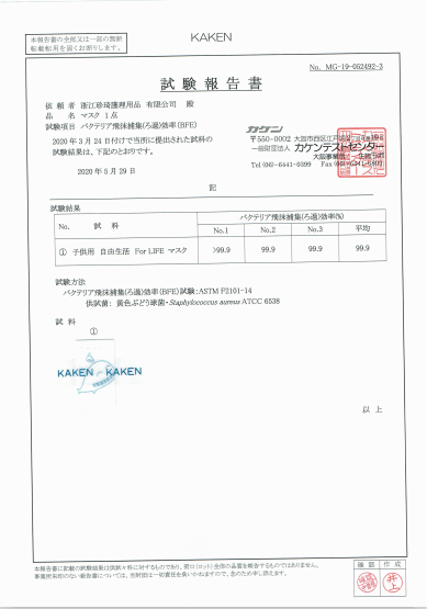 マスク検査報告書